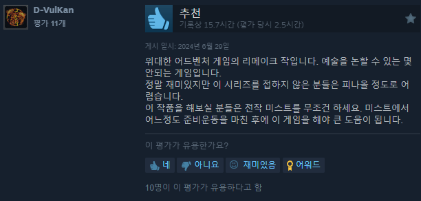 사실 어드벤처 게임 좋아해서 옛날엔 정말 많이 했는데 요즘은 별로 안하기는 함